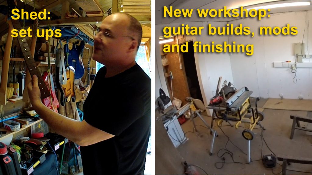 After 5 years I’ve outgrown the 12′ x 8′ shed that we built in 2015. I can barely move now because there’s so much stuff in there but the biggest problem has been there from the start: it’s a shed in a residential neighbourhood. This means that I can’t really run power tools without inconveniencing my neighbours. It’s not something I really thought about back when we had the shed constructed, possibly because at that time I was only setting up guitars rather than making or upgrading them. Truthfully I reached the point that I needed to move and expand about two years ago but I couldn’t figure out how I could afford such a major step up. As a result my work has become increasingly inefficient as I struggled to do jobs by hand rather than use machine tools the jobs really demanded. I had to hunt around for places I could take my workpieces and tools to and do a backlog of routing hurriedly in unfamiliar surroundings. This led to me making mistakes – some of them major – and wasting a ton of time putting them right.